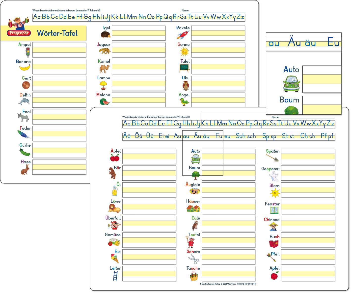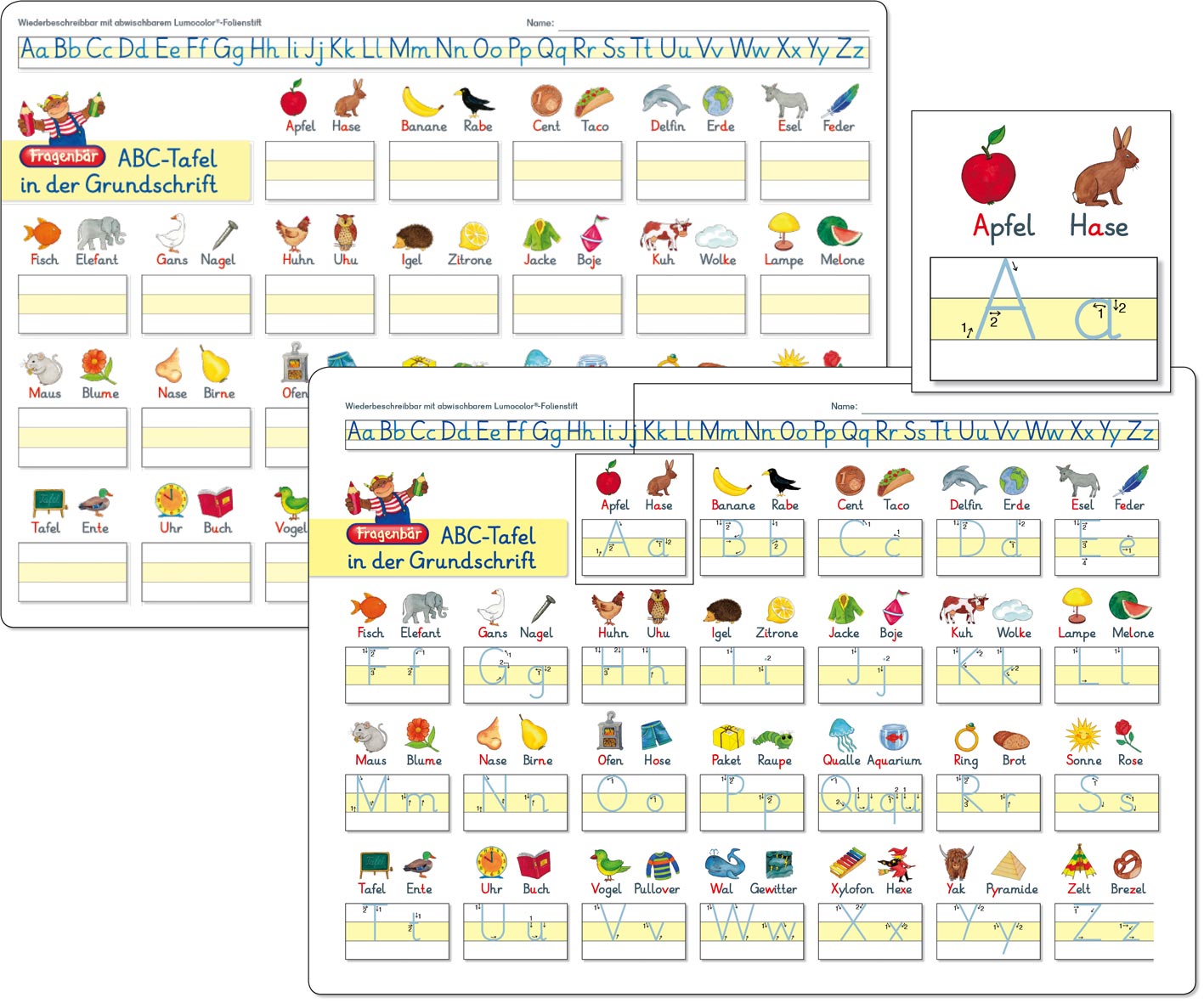 Alle Übungstafeln bestehen aus einem folienbeschichteten Karton und sind mitabwischbaren Lumocolor®-Folienstiftenwiederbeschreibbar.